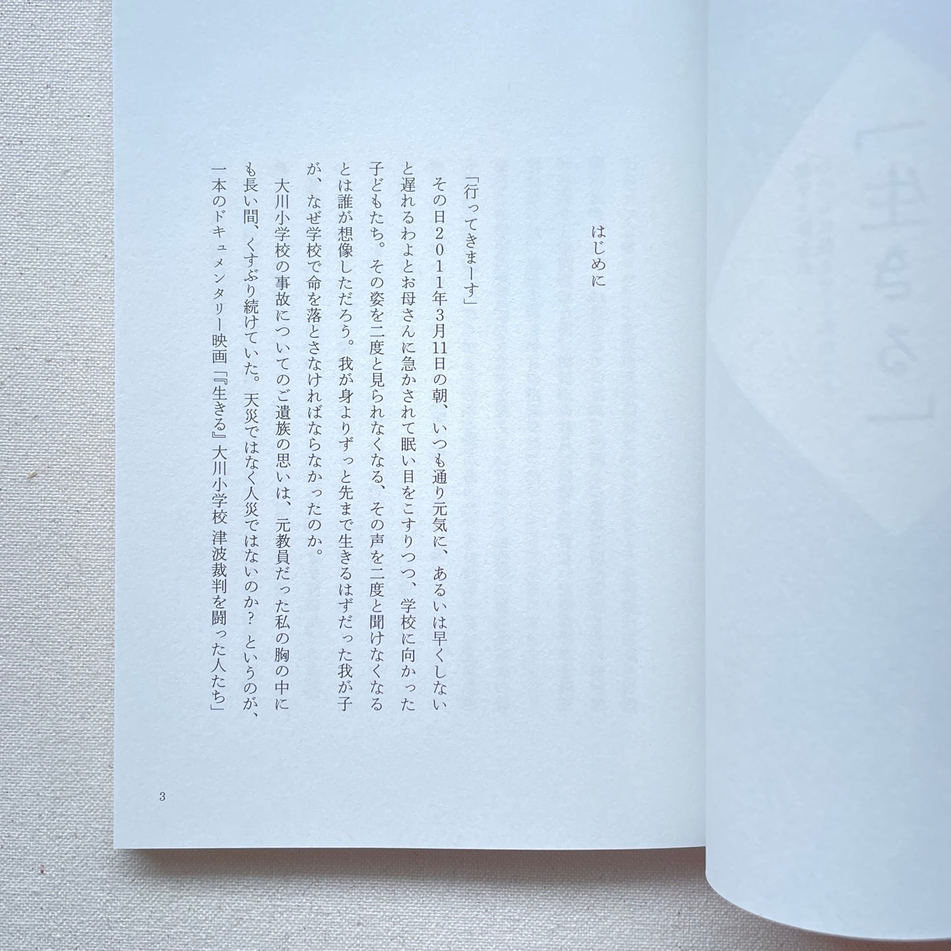 なお本書は2冊組になっており、本冊には上映会までの日々と大川小学校の訪問が綴られ、別冊には協力者のことばや観客のアンケートなどが収録されています。人びとの声が多重的に響き合うよう構成されたこの15年を振り返るに相応しい内容です。
